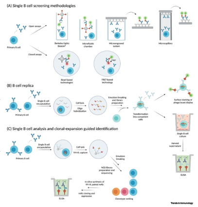 Figure 1. Single B cell screening technologies using miniaturized equipment[1].