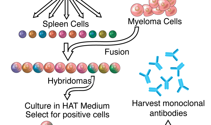 Figure 1: A general representation of the hybridoma method used to produce monoclonal antibodies. (Figure Source: Wikipedia)