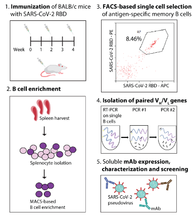 Figure 1: A review of methods for isolating and identifying effective SARS-CoV-2 neutralizing antibodies from single B cells